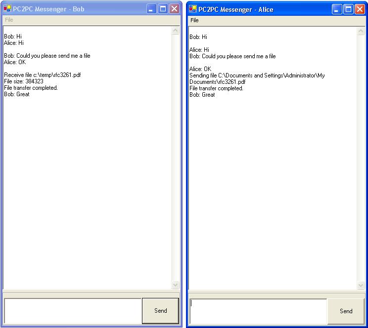 This example shows you that you can use SIP .NET to create SIP client applications to communicate directly without to use a SIP server. Following sample application is simple messenger with feature to send/receive files.